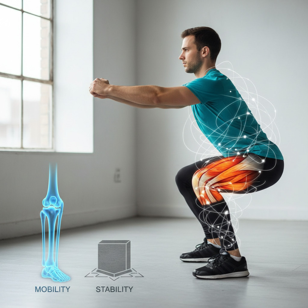 Bewegungskompetenz beschreibt die Fähigkeit, Bewegungen ökonomisch, sicher und kontrolliert auszuführen. Sie umfasst vier zentrale Säulen: Mobilität (Bewegungsreichweite der Gelenke), Stabilität (Kontrolle der Gelenkposition), Kraft (Muskelaktivierung) und Koordination (Zusammenspiel der Muskeln). Eine hohe Bewegungskompetenz bedeutet, dass Sie Ihren Körper präzise steuern können, was besonders bei komplexen Bewegungsabläufen entscheidend ist. Laut dem American Council on Exercise ist Bewegungskompetenz die Voraussetzung für effektives Training und nachhaltige Gesundheitsförderung.